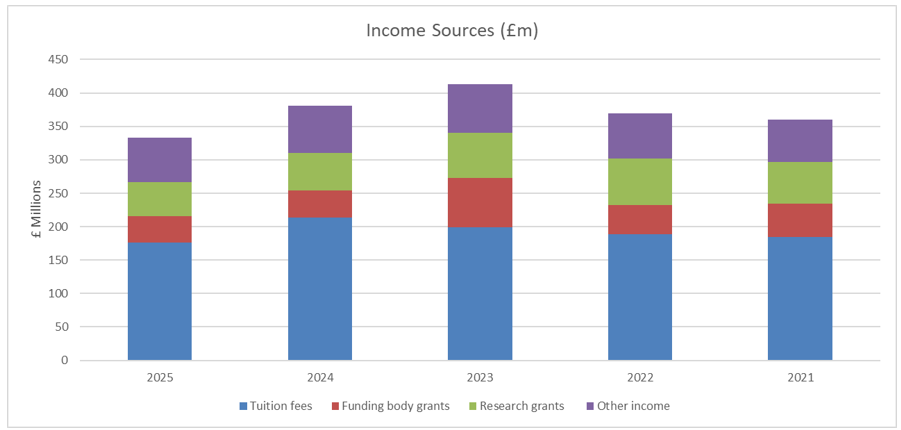 We receive income from a variety of sources including student fees, government grants and research grants, by generating our own income from enterprise, innovation, and education related activities, receiving donations and from returns on investments.